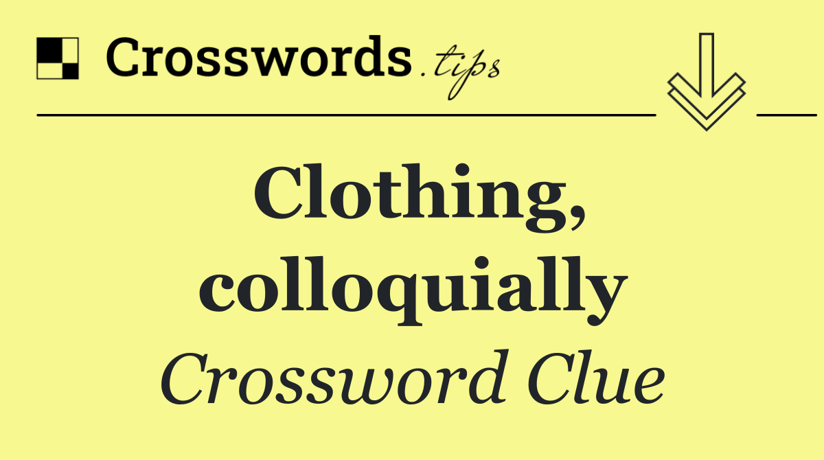 Looking for the answer to Clothing, colloquially from the New York Times puzzle? We have found the exact 7-letter solution you need. Want a challenge? Use our progressive letter reveal tool, explore helpful hints like anagrams and alternative clues, or browse other clues from today's puzzle. Ready to solve it?