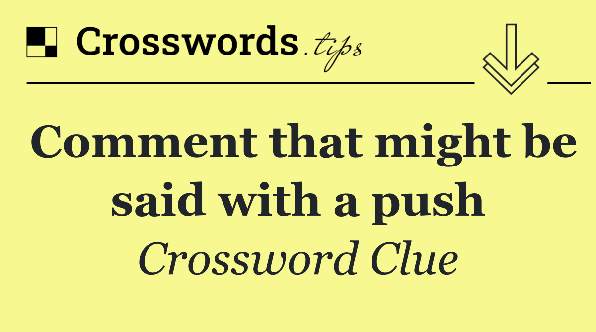 We specialize in solving many of your favorite puzzles, including the New York Times, USA Today, LA Times, Daily Themed Crosswords, and more. The "Comment that might be said with a push" clue from the New York Times puzzle, July 03 edition, is one such example.