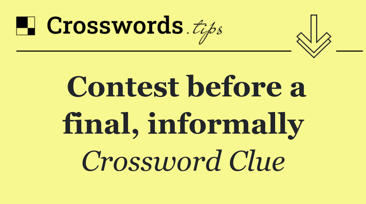 Looking for the answer to Contest before a final, informally from the New York Times puzzle? We have found the exact 4-letter solution you need. Want a challenge? Use our progressive letter reveal tool, explore helpful hints like anagrams and alternative clues, or browse other clues from today's puzzle. Ready to solve it?