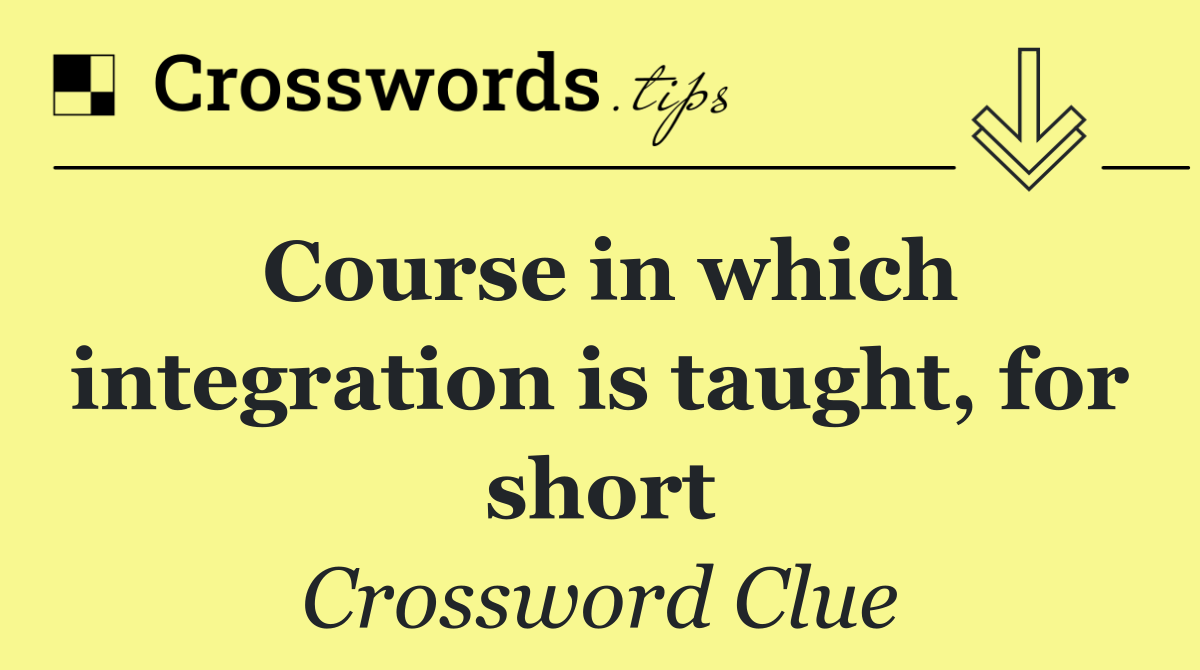 Looking for the answer to Course in which integration is taught, for short from the New York Times puzzle? We have found the exact 4-letter solution you need. Want a challenge? Use our progressive letter reveal tool, explore helpful hints like anagrams and alternative clues, or browse other clues from today's puzzle. Ready to solve it?