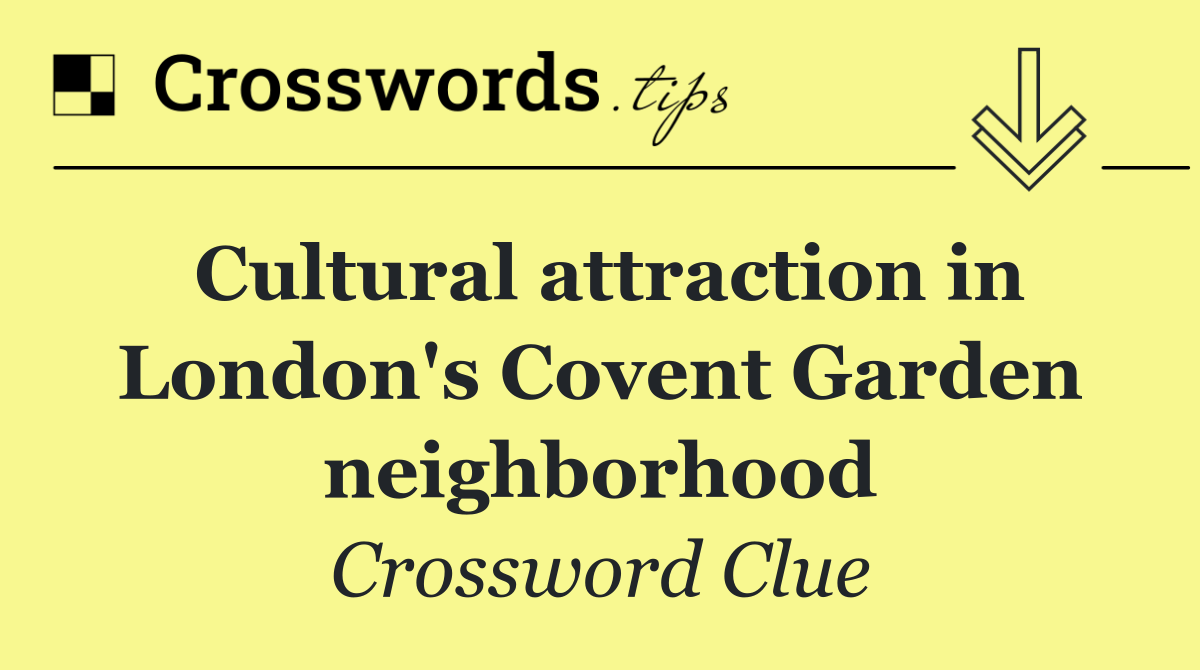 Looking for the answer to Cultural attraction in London's Covent Garden neighborhood from the New York Times puzzle? We have found the exact 15-letter solution you need. Want a challenge? Use our progressive letter reveal tool, explore helpful hints like anagrams and alternative clues, or browse other clues from today's puzzle. Ready to solve it?