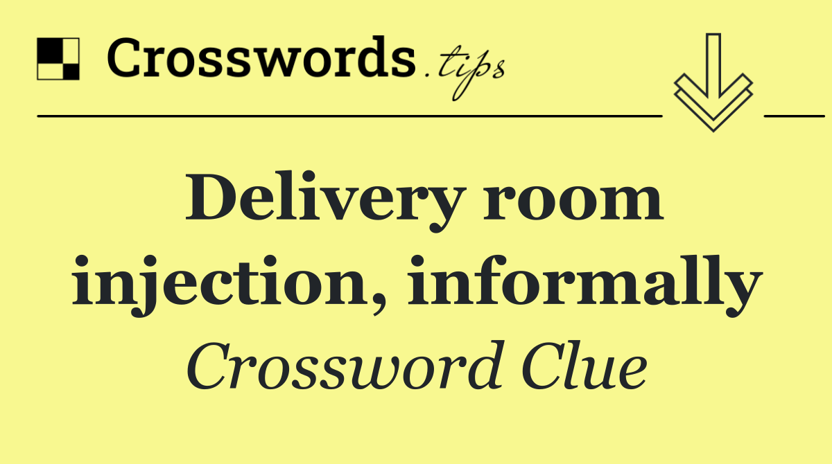 Looking for the answer to Delivery room injection, informally from the New York Times puzzle? We have found the exact 3-letter solution you need. Want a challenge? Use our progressive letter reveal tool, explore helpful hints like anagrams and alternative clues, or browse other clues from today's puzzle. Ready to solve it?