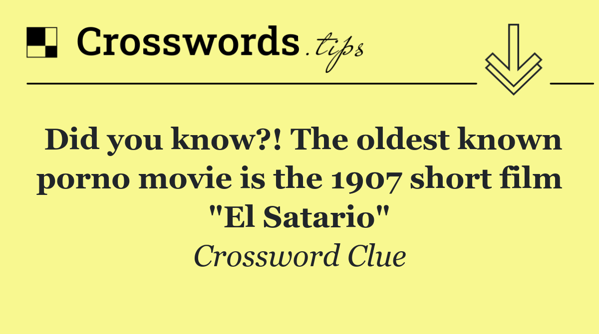 We specialize in solving many of your favorite puzzles, including the New York Times, USA Today, LA Times, Daily Themed Crosswords, and more. The "Did you know?! The oldest known porno movie is the 1907 short film "El Satario"" clue from the New York Times puzzle, July 02 edition, is one such example.