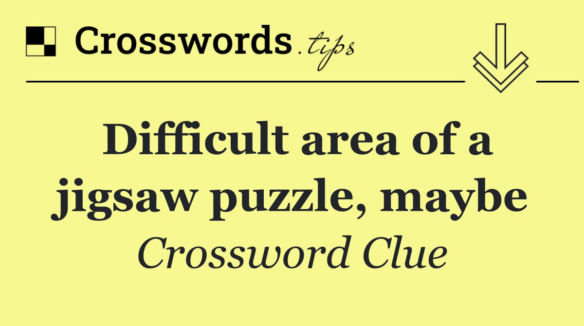 Looking for the answer to Difficult area of a jigsaw puzzle, maybe from the New York Times puzzle? We have found the exact 3-letter solution you need. Want a challenge? Use our progressive letter reveal tool, explore helpful hints like anagrams and alternative clues, or browse other clues from today's puzzle. Ready to solve it?