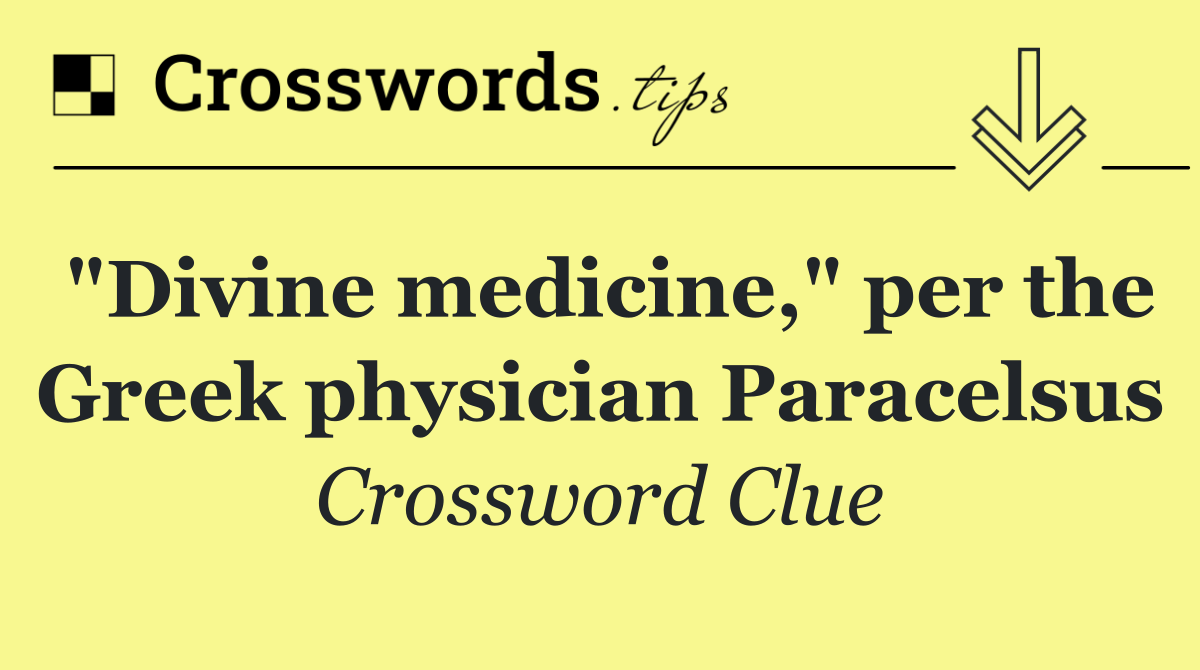 We specialize in solving many of your favorite puzzles, including the New York Times, USA Today, LA Times, Daily Themed Crosswords, and more. The ""Divine medicine," per the Greek physician Paracelsus" clue from the New York Times puzzle, June 04 edition, is one such example.