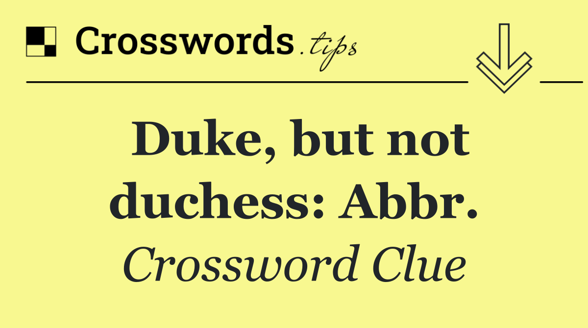 Looking for the answer to Duke, but not duchess: Abbr. from the New York Times puzzle? We have found the exact 3-letter solution you need. Want a challenge? Use our progressive letter reveal tool, explore helpful hints like anagrams and alternative clues, or browse other clues from today's puzzle. Ready to solve it?