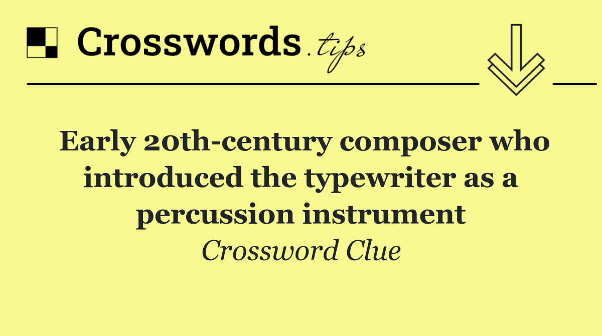 We specialize in solving many of your favorite puzzles, including the New York Times, USA Today, LA Times, Daily Themed Crosswords, and more. The "Early 20th century composer who introduced the typewriter as a percussion instrument" clue from the New York Times puzzle, December 26 edition, is one such example.