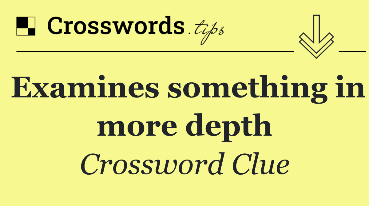 Looking for the answer to Examines something in more depth from the New York Times puzzle? We have found the exact 10-letter solution you need. Want a challenge? Use our progressive letter reveal tool, explore helpful hints like anagrams and alternative clues, or browse other clues from today's puzzle. Ready to solve it?