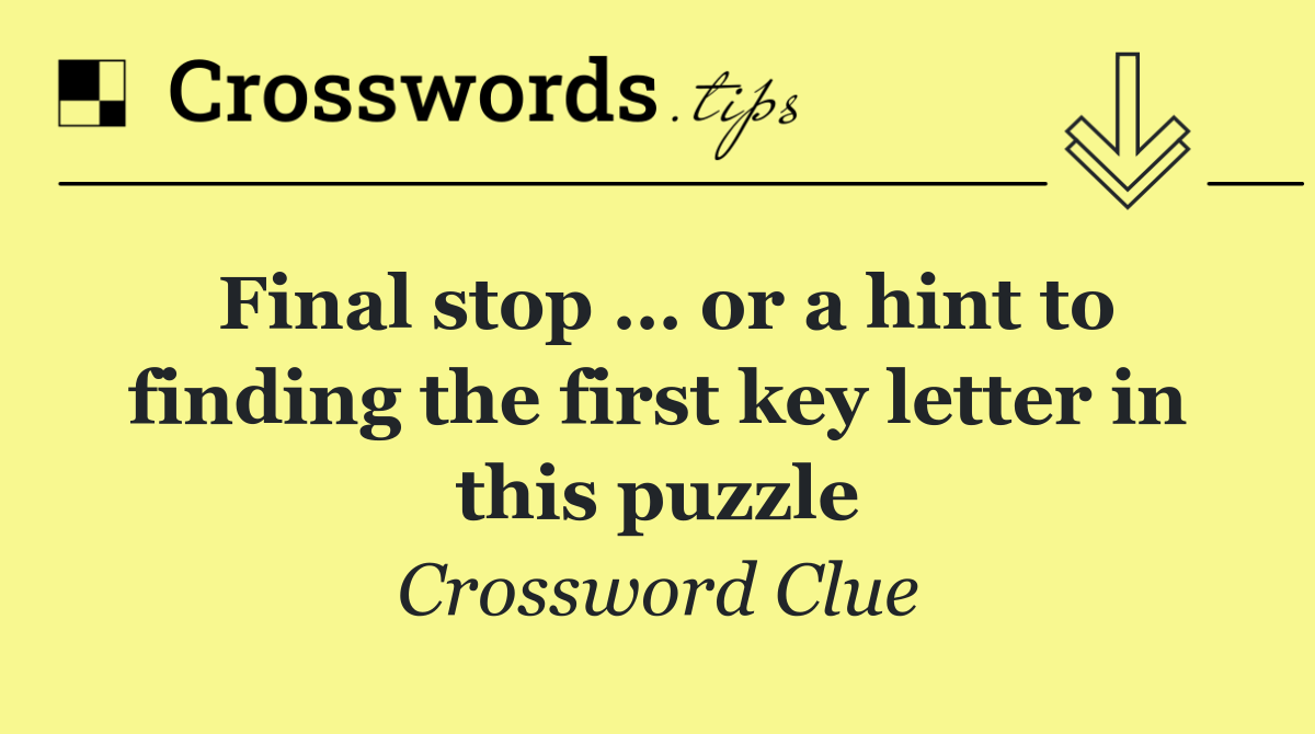 We specialize in solving many of your favorite puzzles, including the New York Times, USA Today, LA Times, Daily Themed Crosswords, and more. The "Final stop … or a hint to finding the first key letter in this puzzle" clue from the New York Times puzzle, July 06 edition, is one such example.
