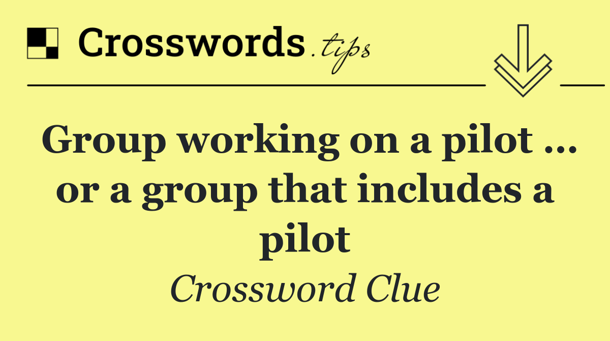 Looking for the answer to Group working on a pilot … or a group that includes a pilot from the New York Times puzzle? We have found the exact 4-letter solution you need. Want a challenge? Use our progressive letter reveal tool, explore helpful hints like anagrams and alternative clues, or browse other clues from today's puzzle. Ready to solve it?