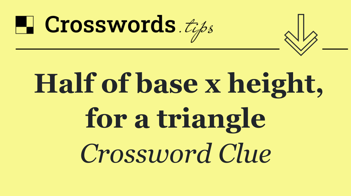 Looking for the answer to Half of base x height, for a triangle from the New York Times puzzle? We have found the exact 4-letter solution you need. Want a challenge? Use our progressive letter reveal tool, explore helpful hints like anagrams and alternative clues, or browse other clues from today's puzzle. Ready to solve it?