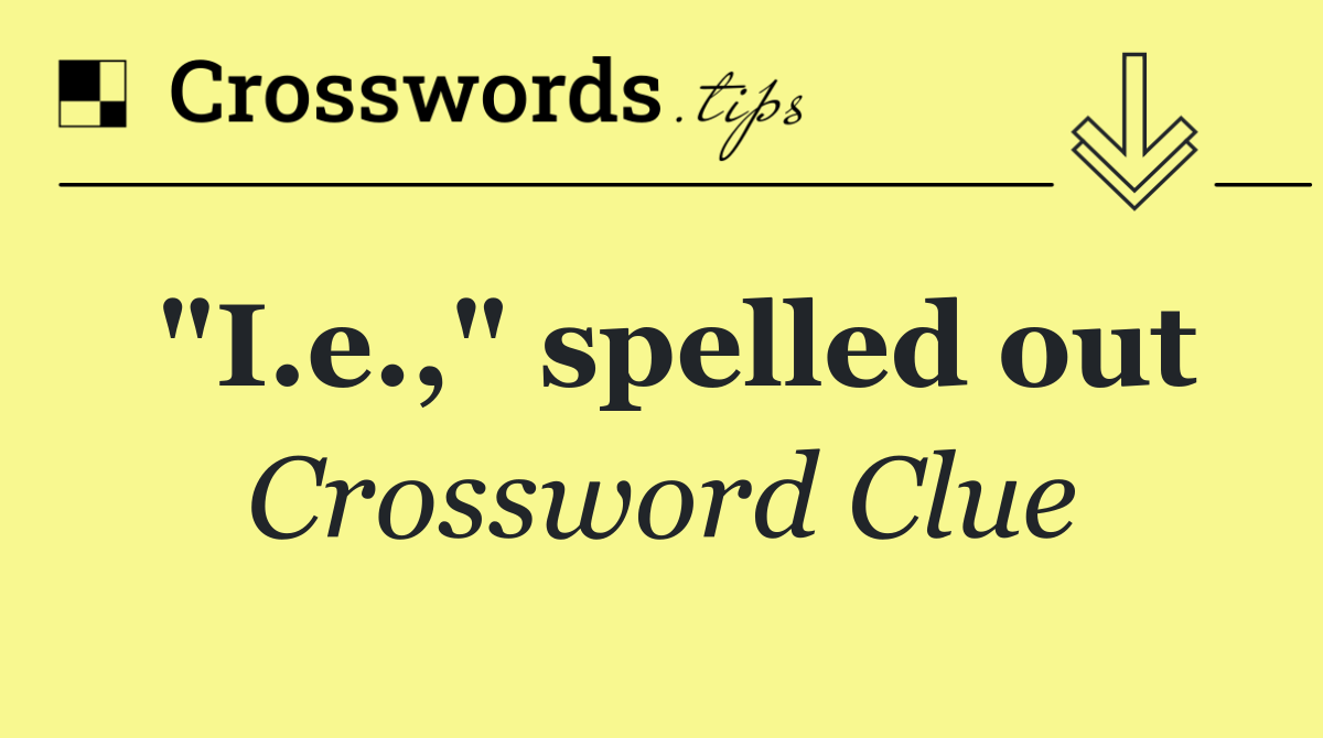 Looking for the answer to "I.e.," spelled out from the New York Times puzzle? We have found the exact 5-letter solution you need. Want a challenge? Use our progressive letter reveal tool, explore helpful hints like anagrams and alternative clues, or browse other clues from today's puzzle. Ready to solve it?
