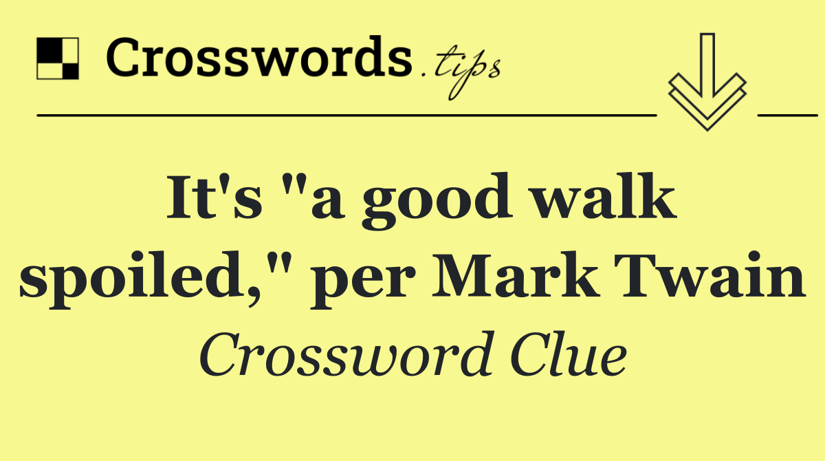Looking for the answer to It's "a good walk spoiled," per Mark Twain from the New York Times puzzle? We have found the exact 4-letter solution you need. Want a challenge? Use our progressive letter reveal tool, explore helpful hints like anagrams and alternative clues, or browse other clues from today's puzzle. Ready to solve it?