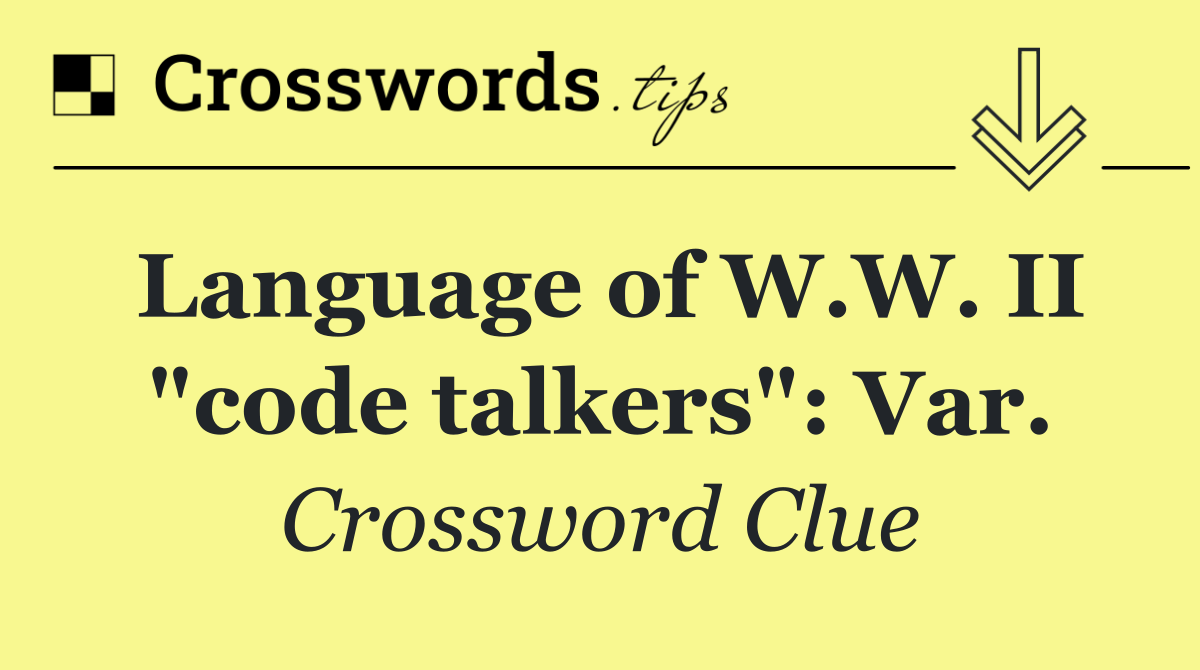 Looking for the answer to Language of W.W. II "code talkers": Var. from the New York Times puzzle? We have found the exact 6-letter solution you need. Want a challenge? Use our progressive letter reveal tool, explore helpful hints like anagrams and alternative clues, or browse other clues from today's puzzle. Ready to solve it?