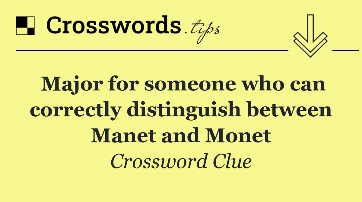 We specialize in solving many of your favorite puzzles, including the New York Times, USA Today, LA Times, Daily Themed Crosswords, and more. The "Major for someone who can correctly distinguish between Manet and Monet" clue from the New York Times puzzle, July 04 edition, is one such example.