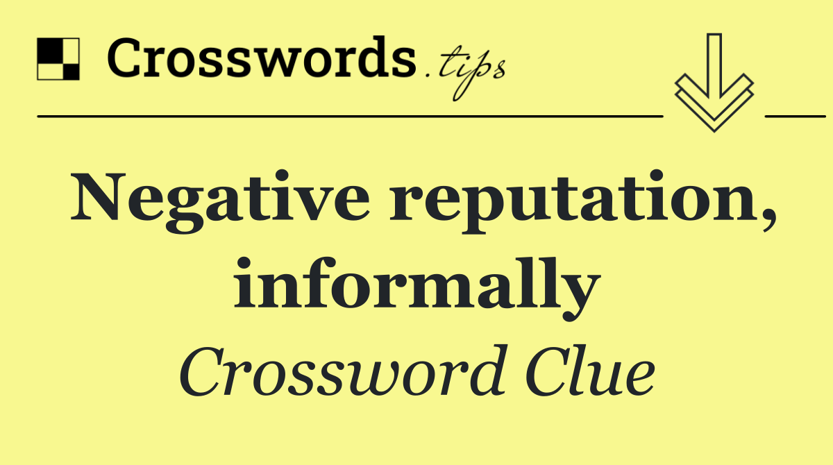 Looking for the answer to Negative reputation, informally from the New York Times puzzle? We have found the exact 6-letter solution you need. Want a challenge? Use our progressive letter reveal tool, explore helpful hints like anagrams and alternative clues, or browse other clues from today's puzzle. Ready to solve it?