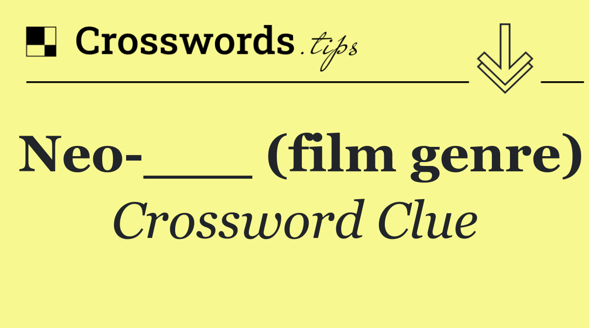 Looking for the answer to Neo ___ (film genre) from the New York Times puzzle? We have found the exact 4-letter solution you need. Want a challenge? Use our progressive letter reveal tool, explore helpful hints like anagrams and alternative clues, or browse other clues from today's puzzle. Ready to solve it?