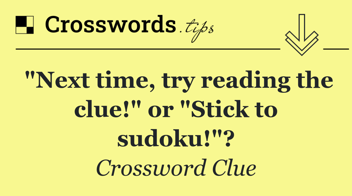 Looking for the answer to "Next time, try reading the clue!" or "Stick to sudoku!"? from the New York Times puzzle? We have found the exact 10-letter solution you need. Want a challenge? Use our progressive letter reveal tool, explore helpful hints like anagrams and alternative clues, or browse other clues from today's puzzle. Ready to solve it?