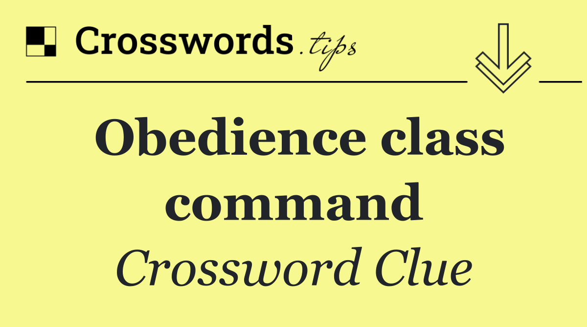 This clue has multiple correct answers in the New York Times crossword puzzle. Obedience class command appears 2 times in the grid, where all are 4-letter words. We've compiled all the verified answers to help you navigate this extra-challenging aspect of today's puzzle. Whether you're stuck on one instance or curious about all the anwers, you'll find the what you need below to complete your solve.