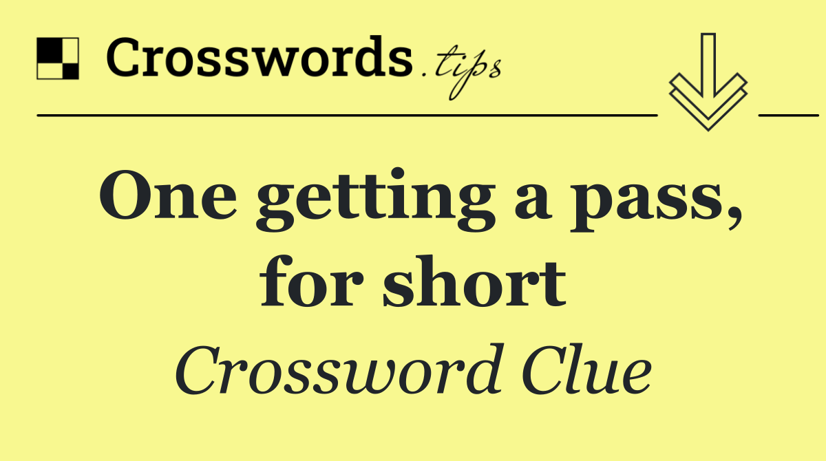 Looking for the answer to One getting a pass, for short from the New York Times puzzle? We have found the exact 3-letter solution you need. Want a challenge? Use our progressive letter reveal tool, explore helpful hints like anagrams and alternative clues, or browse other clues from today's puzzle. Ready to solve it?