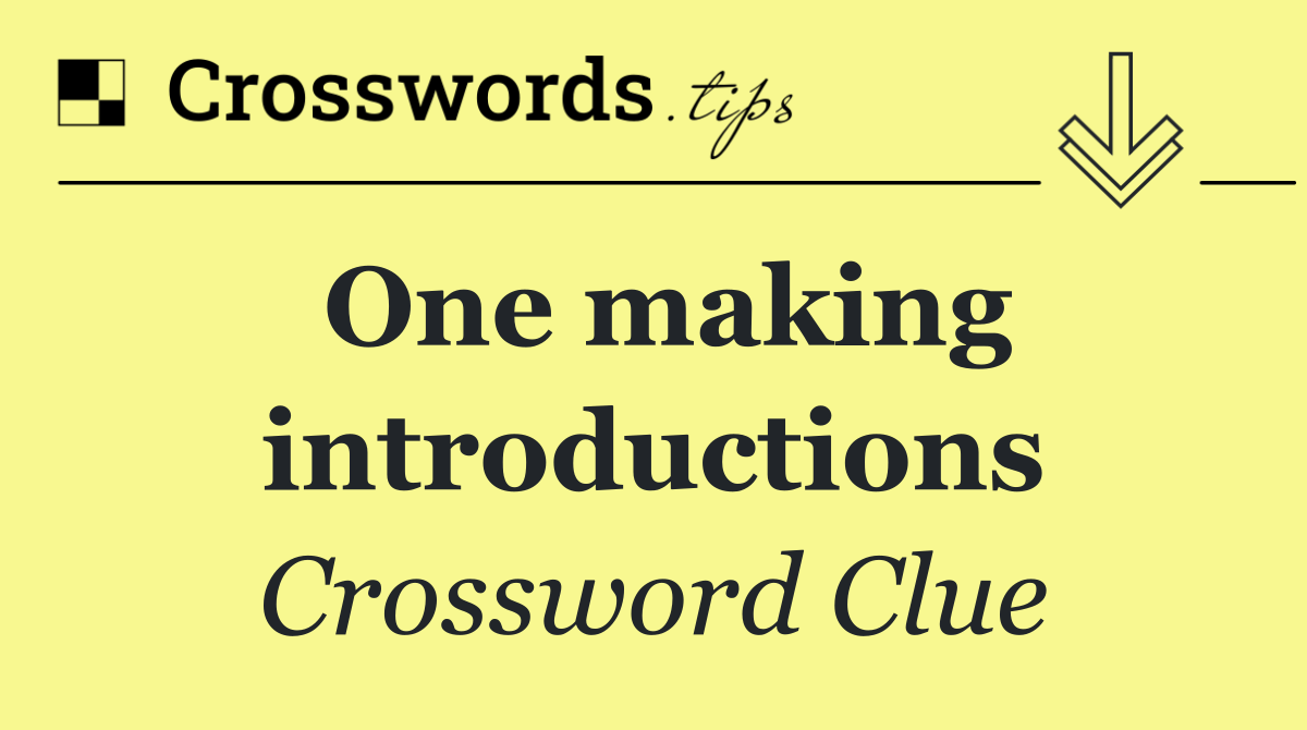 Looking for the answer to One making introductions from the New York Times puzzle? We have found the exact 5-letter solution you need. Want a challenge? Use our progressive letter reveal tool, explore helpful hints like anagrams and alternative clues, or browse other clues from today's puzzle. Ready to solve it?