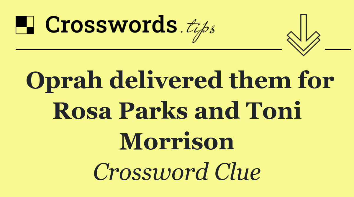 We specialize in solving many of your favorite puzzles, including the New York Times, USA Today, LA Times, Daily Themed Crosswords, and more. The "Oprah delivered them for Rosa Parks and Toni Morrison" clue from the New York Times puzzle, May 25 edition, is one such example.