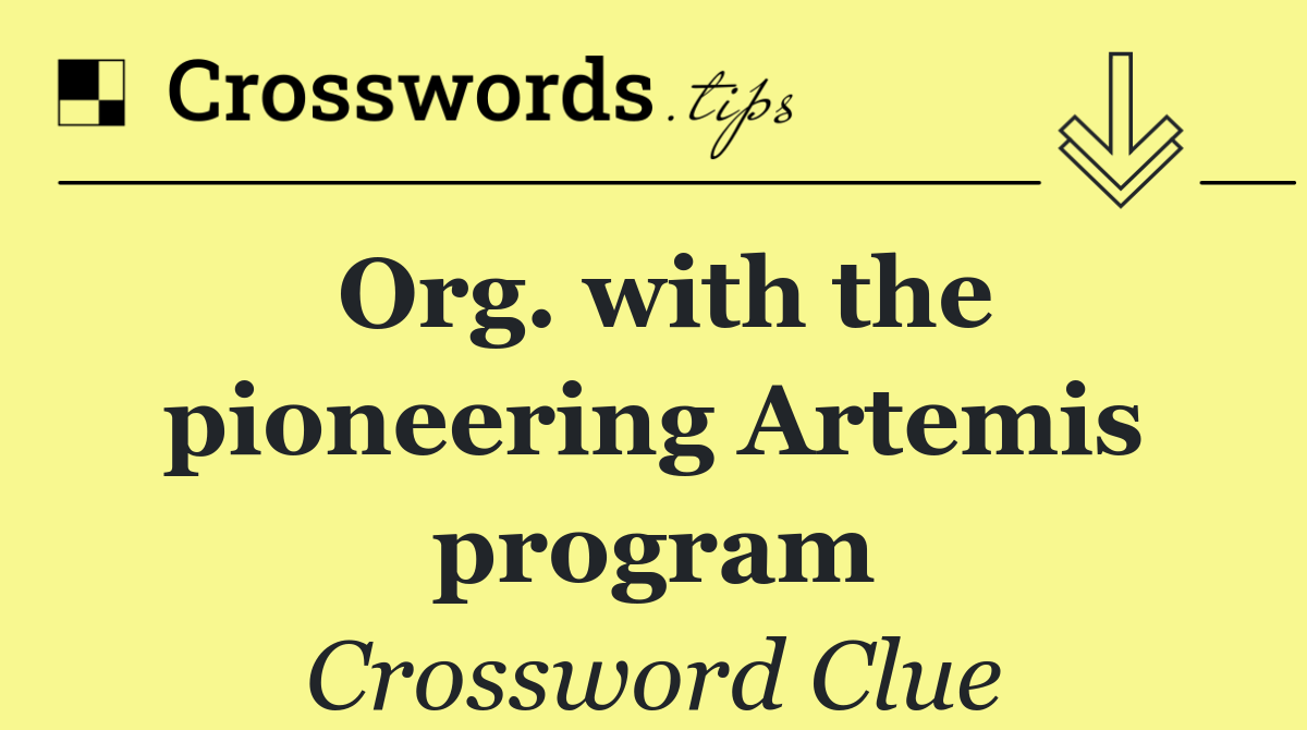 Looking for the answer to Org. with the pioneering Artemis program from the New York Times puzzle? We have found the exact 4-letter solution you need. Want a challenge? Use our progressive letter reveal tool, explore helpful hints like anagrams and alternative clues, or browse other clues from today's puzzle. Ready to solve it?