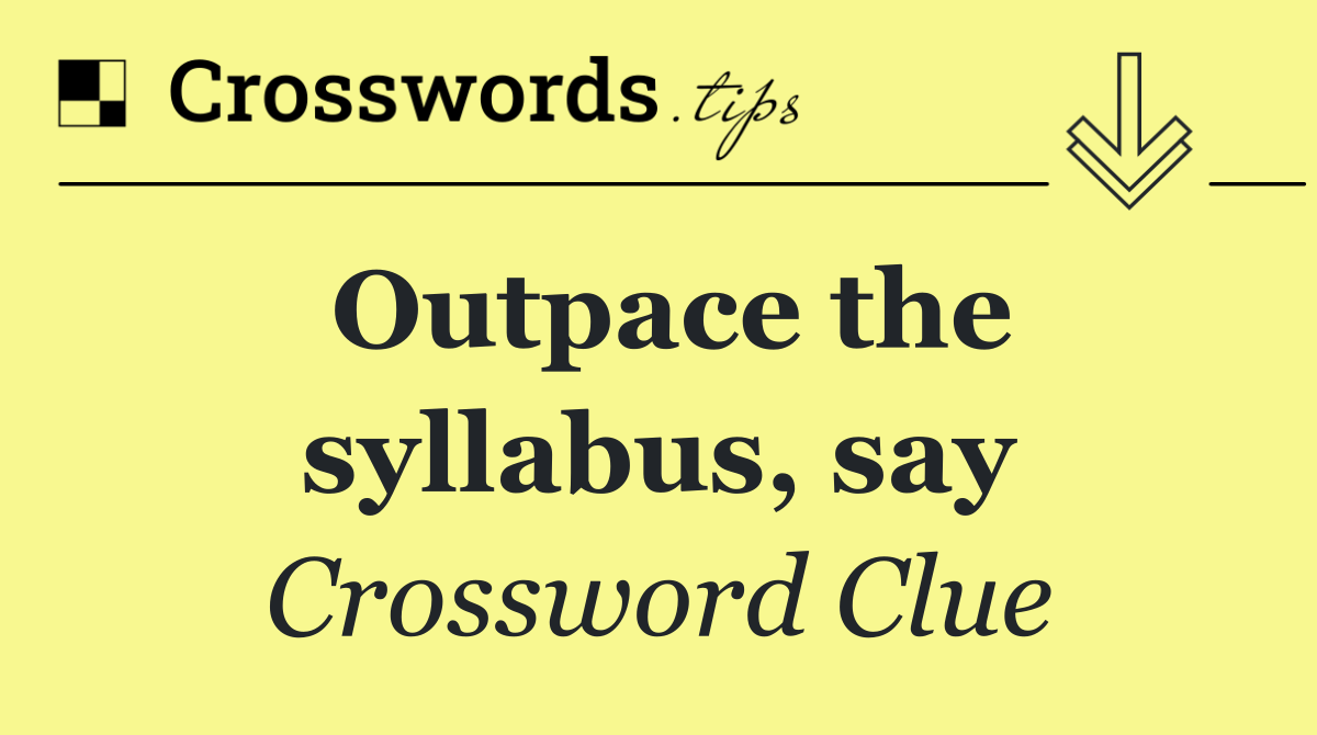 Looking for the answer to Outpace the syllabus, say from the New York Times puzzle? We have found the exact 9-letter solution you need. Want a challenge? Use our progressive letter reveal tool, explore helpful hints like anagrams and alternative clues, or browse other clues from today's puzzle. Ready to solve it?