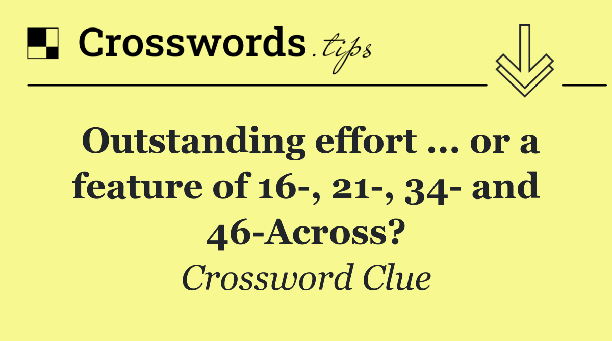 Looking for the answer to Outstanding effort ... or a feature of 16 , 21 , 34 and 46 Across? from the New York Times puzzle? We have found the exact 9-letter solution you need. Want a challenge? Use our progressive letter reveal tool, explore helpful hints like anagrams and alternative clues, or browse other clues from today's puzzle. Ready to solve it?