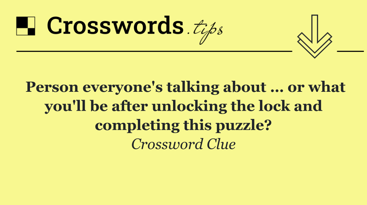 Looking for the answer to Person everyone's talking about … or what you'll be after unlocking the lock and completing this puzzle? from the New York Times puzzle? We have found the exact 12-letter solution you need. Want a challenge? Use our progressive letter reveal tool, explore helpful hints like anagrams and alternative clues, or browse other clues from today's puzzle. Ready to solve it?
