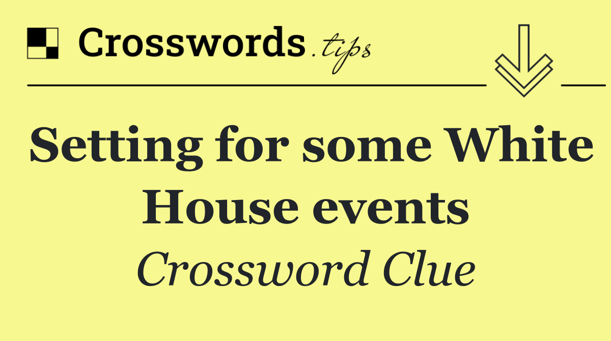 Looking for the answer to Setting for some White House events from the New York Times puzzle? We have found the exact 4-letter solution you need. Want a challenge? Use our progressive letter reveal tool, explore helpful hints like anagrams and alternative clues, or browse other clues from today's puzzle. Ready to solve it?