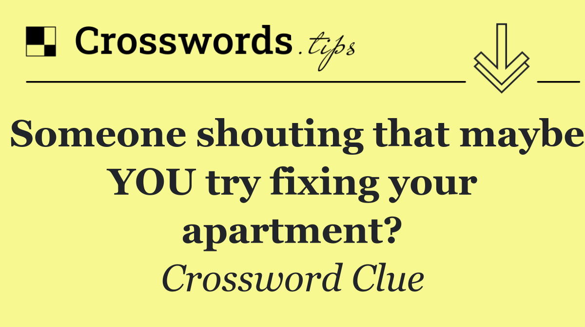 We specialize in solving many of your favorite puzzles, including the New York Times, USA Today, LA Times, Daily Themed Crosswords, and more. The "Someone shouting that maybe YOU try fixing your apartment?" clue from the New York Times puzzle, November 10 edition, is one such example.