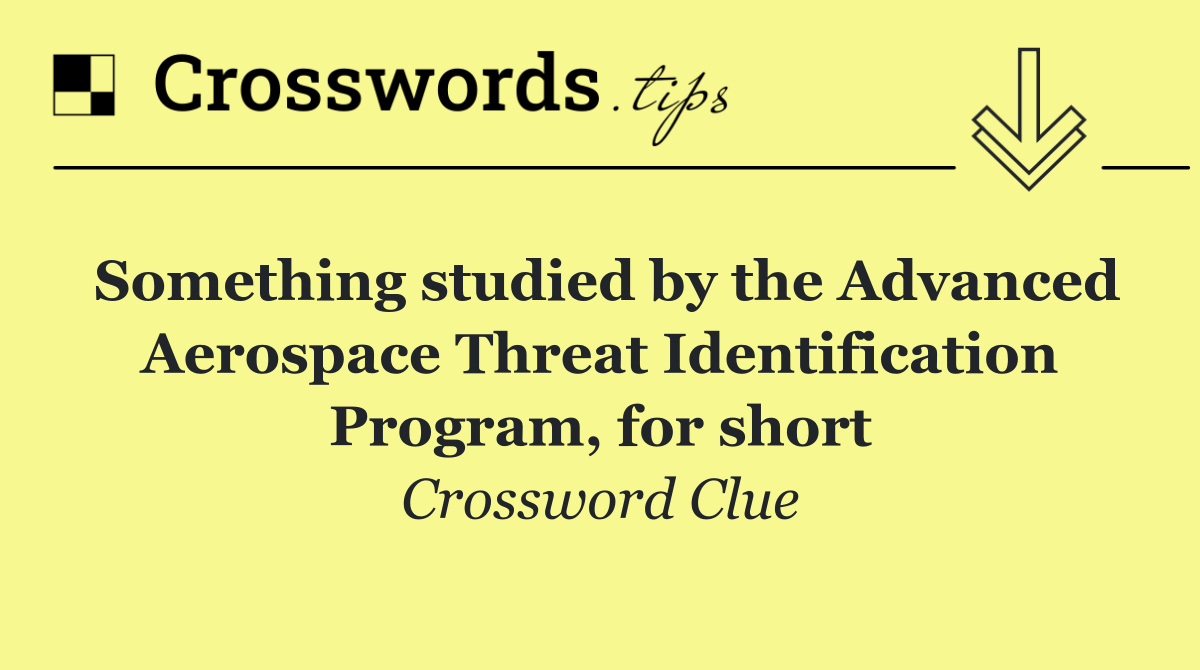 Looking for the answer to Something studied by the Advanced Aerospace Threat Identification Program, for short from the New York Times puzzle? We have found the exact 3-letter solution you need. Want a challenge? Use our progressive letter reveal tool, explore helpful hints like anagrams and alternative clues, or browse other clues from today's puzzle. Ready to solve it?