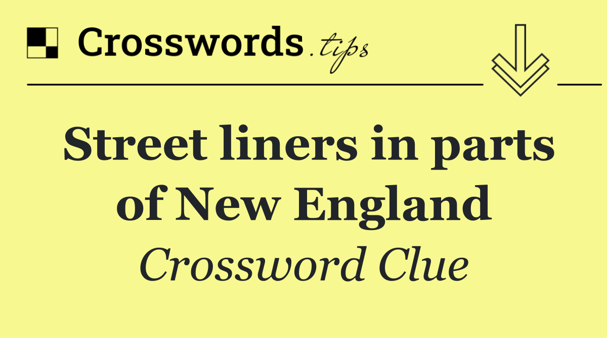 Looking for the answer to Street liners in parts of New England from the New York Times puzzle? We have found the exact 8-letter solution you need. Want a challenge? Use our progressive letter reveal tool, explore helpful hints like anagrams and alternative clues, or browse other clues from today's puzzle. Ready to solve it?