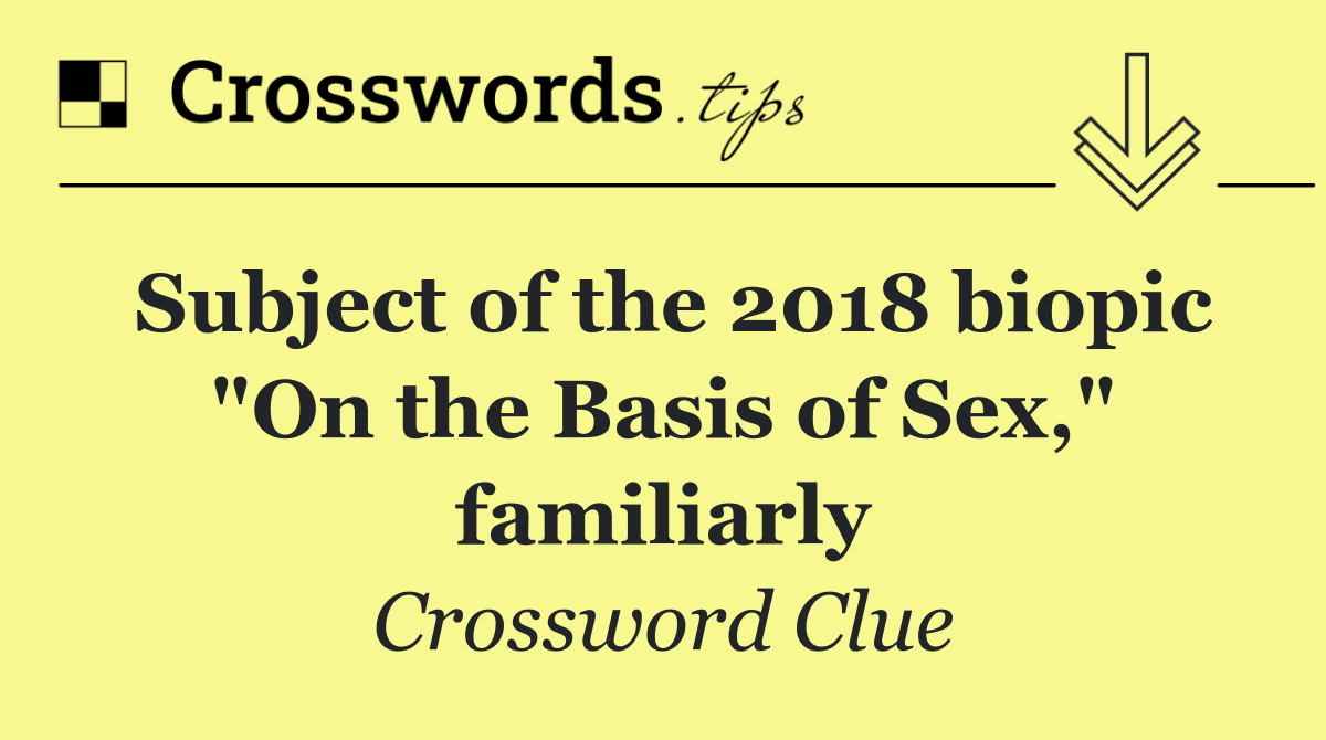 We specialize in solving many of your favorite puzzles, including the New York Times, USA Today, LA Times, Daily Themed Crosswords, and more. The "Subject of the 2018 biopic "On the Basis of Sex," familiarly" clue from the New York Times puzzle, May 18 edition, is one such example.
