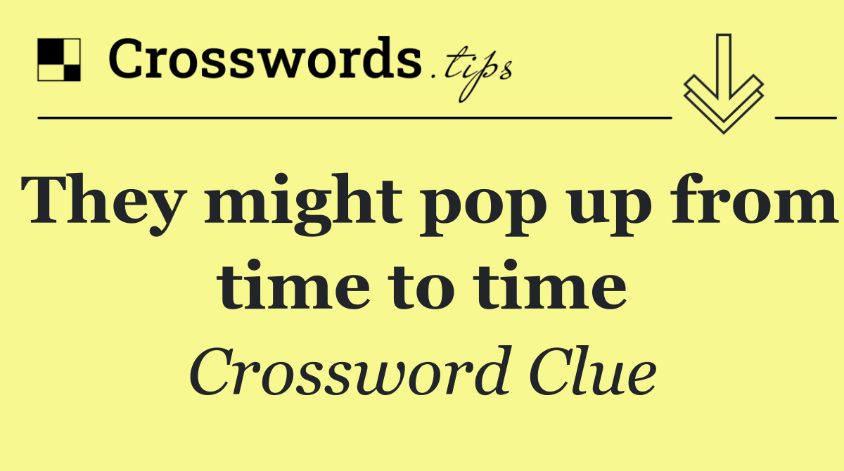 Looking for the answer to They might pop up from time to time from the New York Times puzzle? We have found the exact 3-letter solution you need. Want a challenge? Use our progressive letter reveal tool, explore helpful hints like anagrams and alternative clues, or browse other clues from today's puzzle. Ready to solve it?
