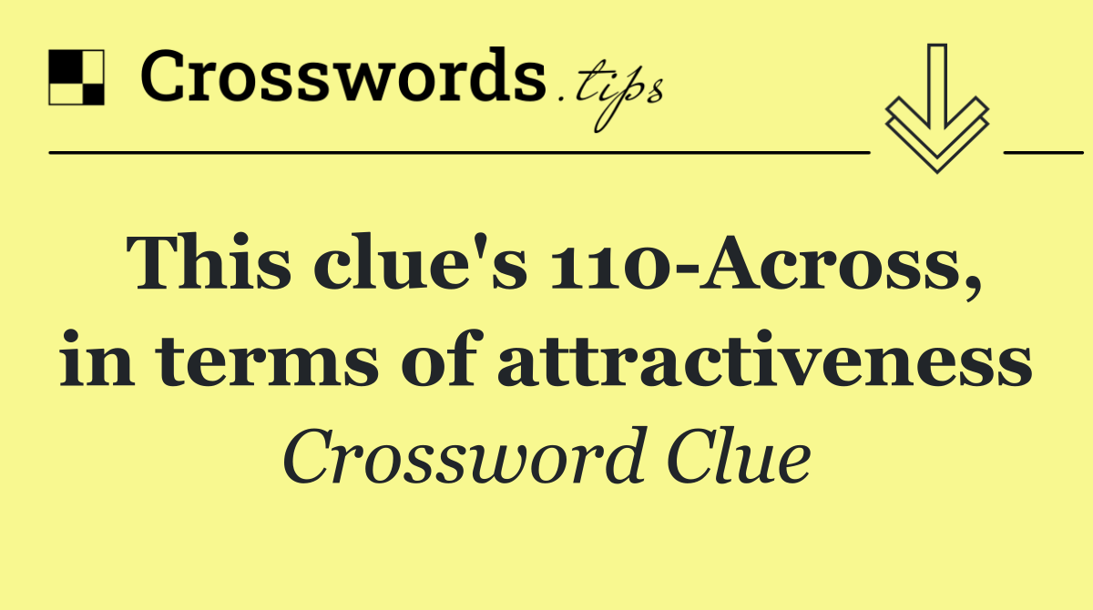 We specialize in solving many of your favorite puzzles, including the New York Times, USA Today, LA Times, Daily Themed Crosswords, and more. The "This clue's 110 Across, in terms of attractiveness" clue from the New York Times puzzle, November 19 edition, is one such example.