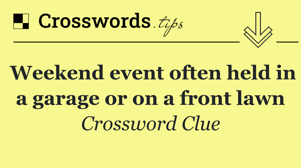 Looking for the answer to Weekend event often held in a garage or on a front lawn from the New York Times puzzle? We have found the exact 7-letter solution you need. Want a challenge? Use our progressive letter reveal tool, explore helpful hints like anagrams and alternative clues, or browse other clues from today's puzzle. Ready to solve it?