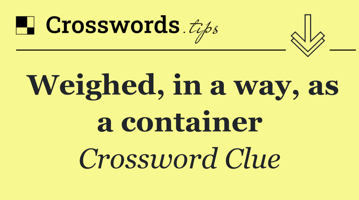 We specialize in solving many of your favorite puzzles, including the New York Times, USA Today, LA Times, Daily Themed Crosswords, and more. The "Weighed, in a way, as a container" clue from the New York Times puzzle, November 19 edition, is one such example.
