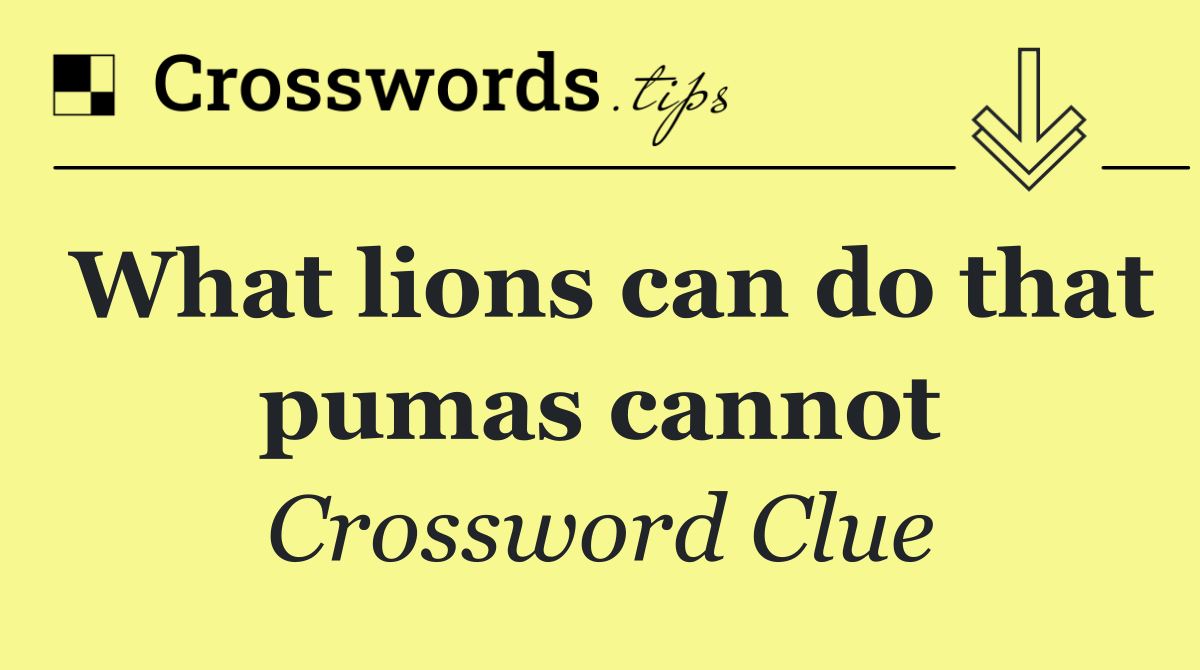 We specialize in solving many of your favorite puzzles, including the New York Times, USA Today, LA Times, Daily Themed Crosswords, and more. The "What lions can do that pumas cannot" clue from the New York Times puzzle, August 17 edition, is one such example.