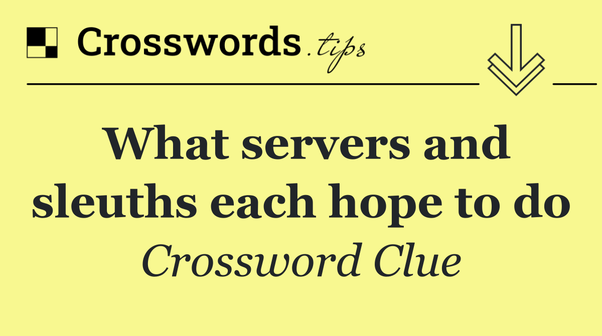 Looking for the answer to What servers and sleuths each hope to do from the New York Times puzzle? We have found the exact 7-letter solution you need. Want a challenge? Use our progressive letter reveal tool, explore helpful hints like anagrams and alternative clues, or browse other clues from today's puzzle. Ready to solve it?