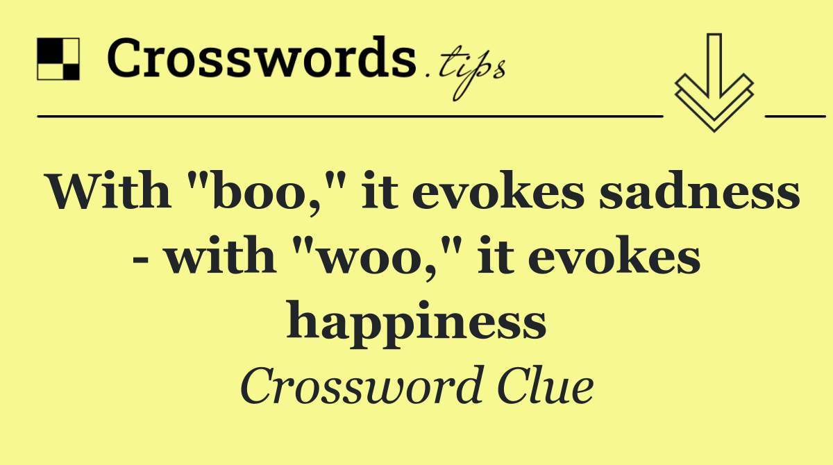 We specialize in solving many of your favorite puzzles, including the New York Times, USA Today, LA Times, Daily Themed Crosswords, and more. The "With "boo," it evokes sadness with "woo," it evokes happiness" clue from the New York Times puzzle, July 06 edition, is one such example.