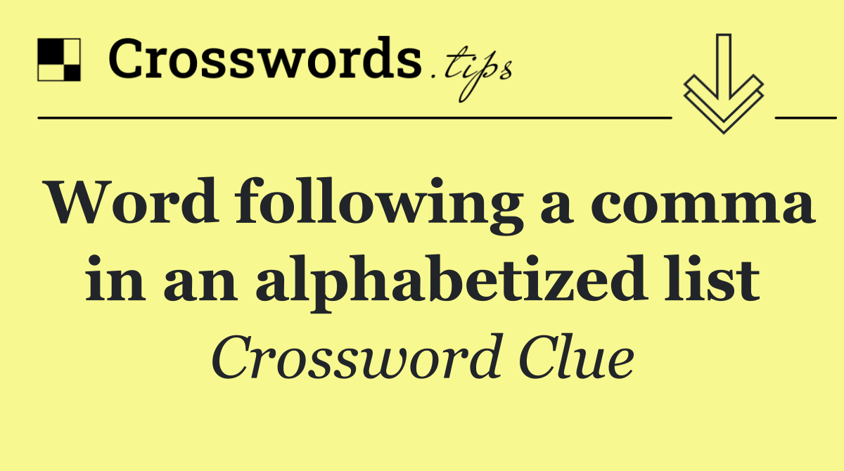 We specialize in solving many of your favorite puzzles, including the New York Times, USA Today, LA Times, Daily Themed Crosswords, and more. The "Word following a comma in an alphabetized list" clue from the New York Times puzzle, November 03 edition, is one such example.