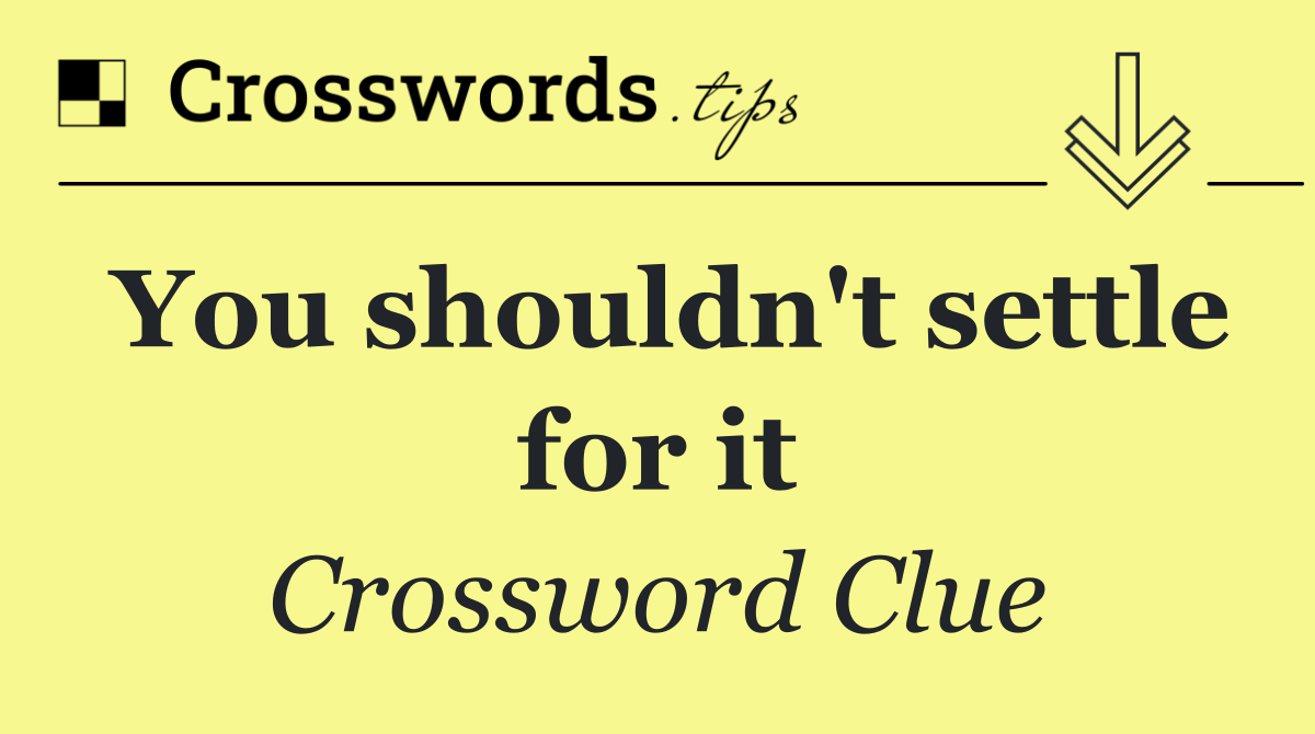 Looking for the answer to You shouldn't settle for it from the New York Times puzzle? We have found the exact 4-letter solution you need. Want a challenge? Use our progressive letter reveal tool, explore helpful hints like anagrams and alternative clues, or browse other clues from today's puzzle. Ready to solve it?
