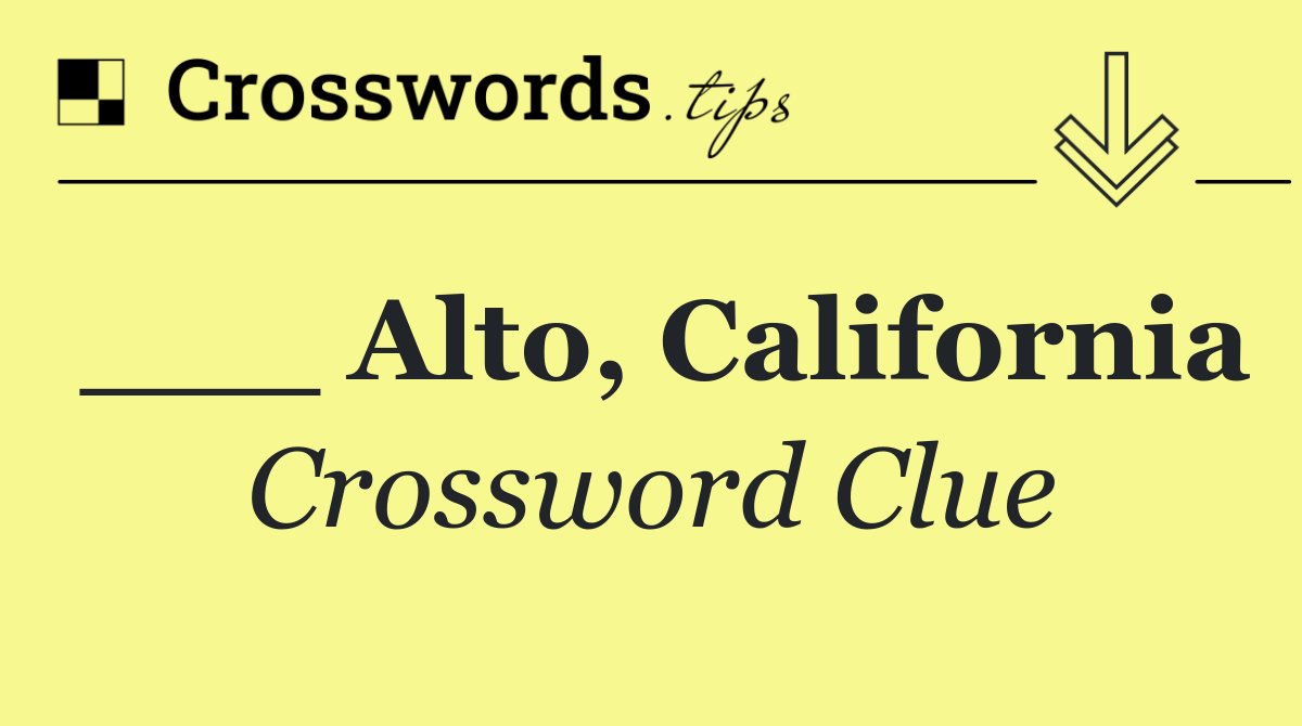 Looking for the answer to ___ Alto, California from the USA Today puzzle? We have found the exact 4-letter solution you need. Want a challenge? Use our progressive letter reveal tool, explore helpful hints like anagrams and alternative clues, or browse other clues from today's puzzle. Ready to solve it?