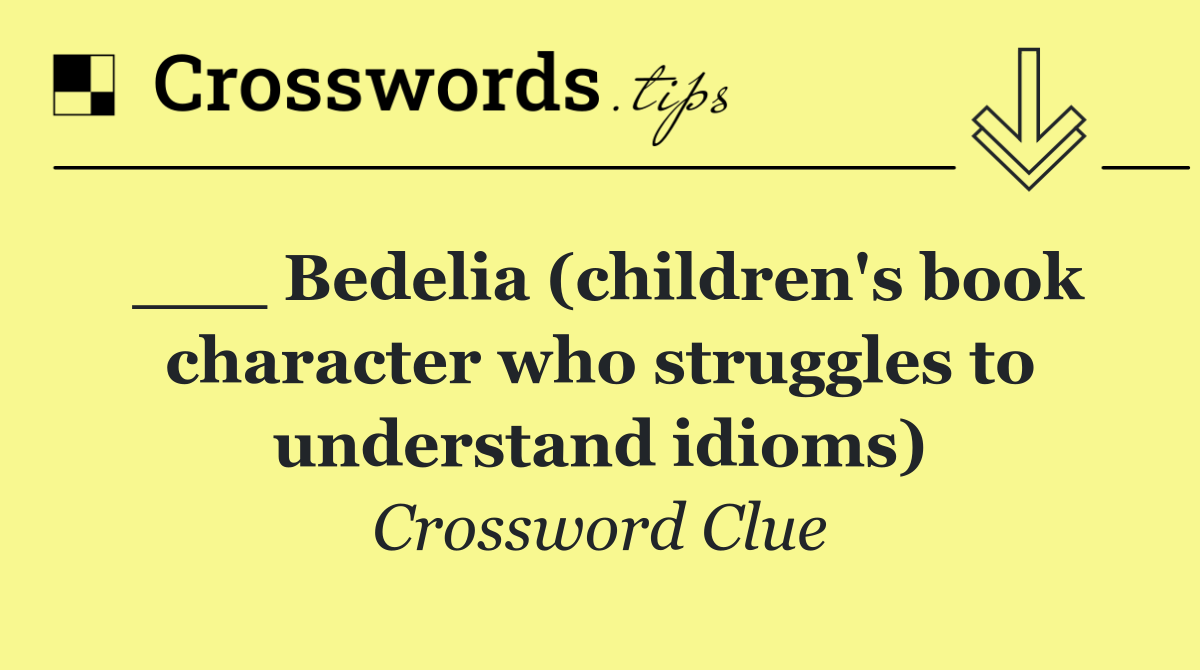 Looking for the answer to ___ Bedelia (children's book character who struggles to understand idioms) from the USA Today puzzle? We have found the exact 6-letter solution you need. Want a challenge? Use our progressive letter reveal tool, explore helpful hints like anagrams and alternative clues, or browse other clues from today's puzzle. Ready to solve it?