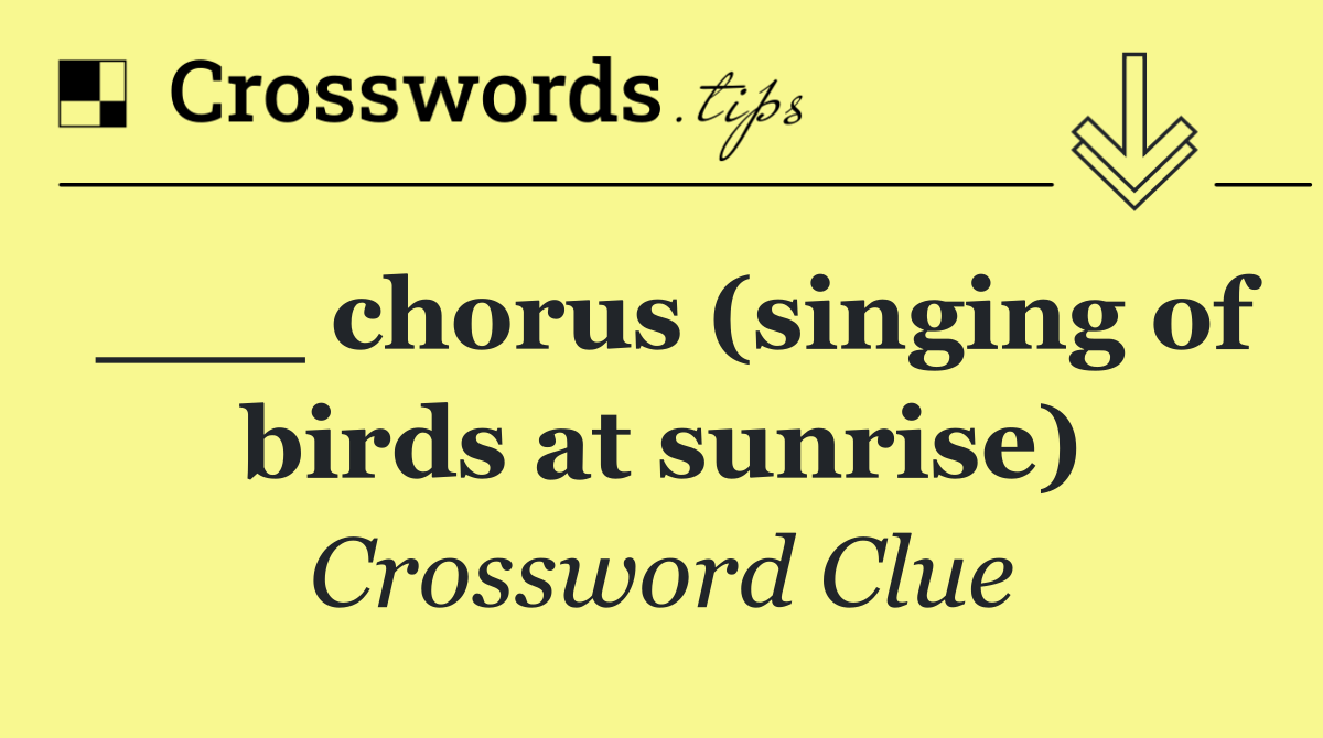 Looking for the answer to ___ chorus (singing of birds at sunrise) from the USA Today puzzle? We have found the exact 4-letter solution you need. Want a challenge? Use our progressive letter reveal tool, explore helpful hints like anagrams and alternative clues, or browse other clues from today's puzzle. Ready to solve it?