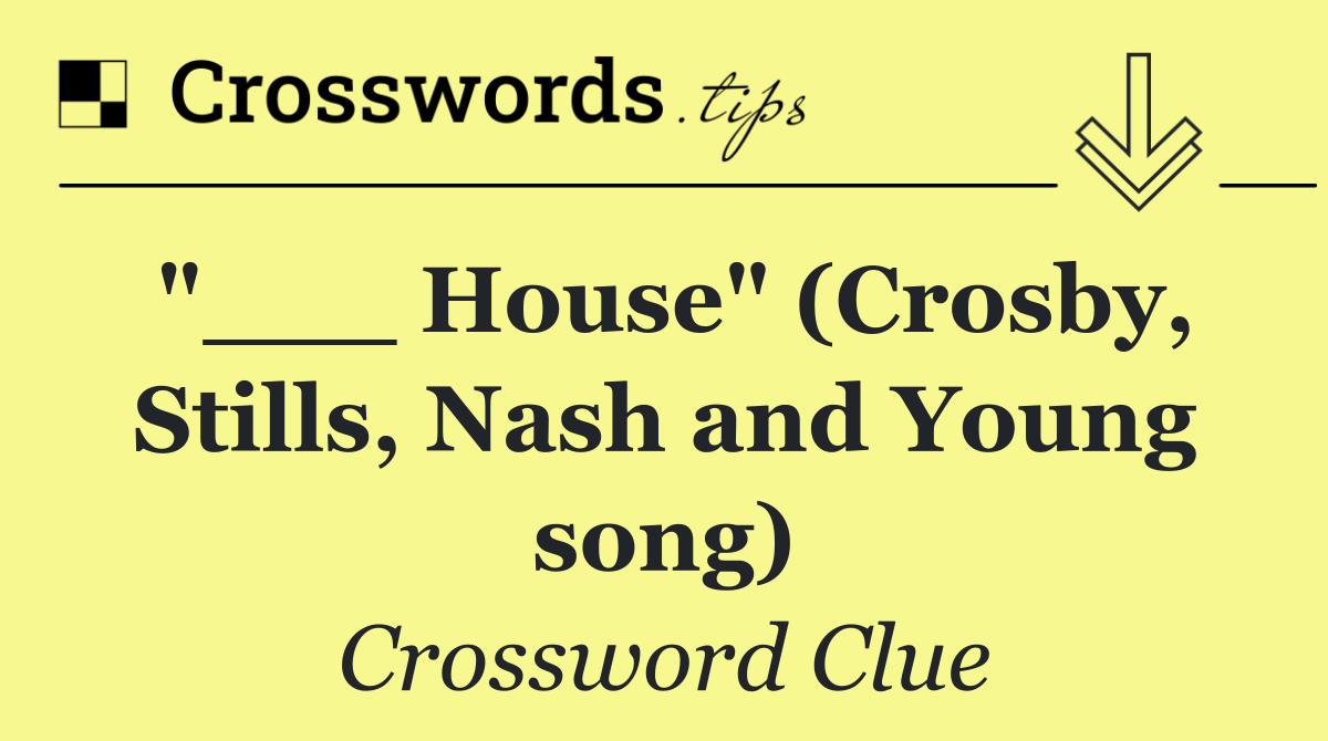 Looking for the answer to "___ House" (Crosby, Stills, Nash and Young song) from the USA Today puzzle? We have found the exact 3-letter solution you need. Want a challenge? Use our progressive letter reveal tool, explore helpful hints like anagrams and alternative clues, or browse other clues from today's puzzle. Ready to solve it?