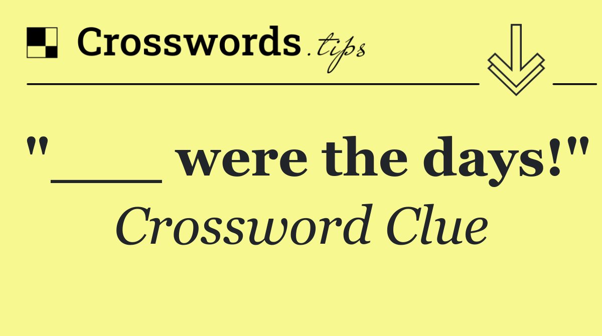 We specialize in solving many of your favorite puzzles, including the New York Times, USA Today, LA Times, Daily Themed Crosswords, and more. The ""___ were the days!"" clue from the USA Today puzzle, June 21 edition, is one such example.