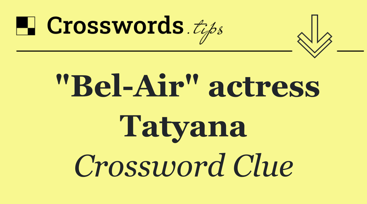 We specialize in solving many of your favorite puzzles, including the New York Times, USA Today, LA Times, Daily Themed Crosswords, and more. The ""Bel Air" actress Tatyana" clue from the USA Today puzzle, June 15 edition, is one such example.